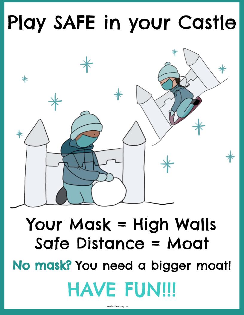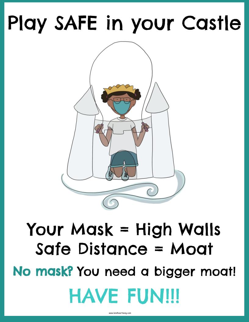 Dr. Goldman’s idea is that castles are structures that keep the people in them safe, by using high walls and large moats. In his metaphor, our masks are the high walls, and our social distance are our moats. It is simple, yet something children (and adults) can easily relate to.