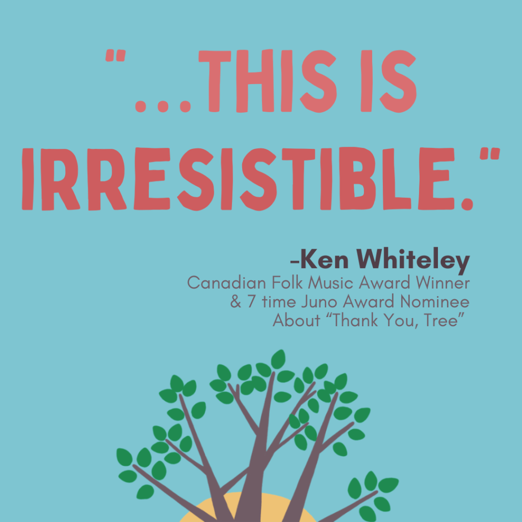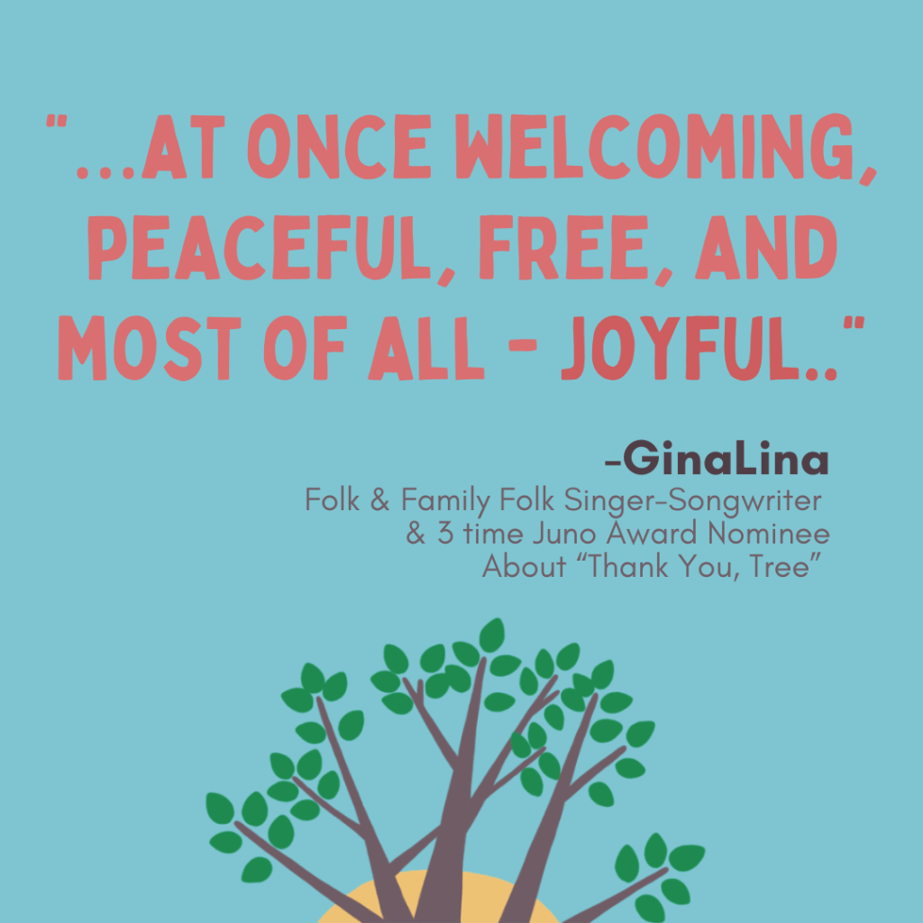 “Thank You, Tree” is the song that first nudged me to share my nature songs with a wider audience, and so it feels fitting that it is also the first single released from the upcoming album. I started writing children’s songs that nurture love for the land when I was on a maternity leave with my youngest, over 8 years ago. While my little ones (then 2 years old and newborn) would play with toys and trains in the living room, I would noodle around with my guitar and make up little songs for them. When I returned to teaching, I started sharing these songs with Kindergarten students, and it was heaps of fun. When our world changed in the Spring of 2020, I was working as an Outdoor Learning and Music Teacher for a number of Kindergarten classes. With our stay-at-home orders, I remember looking at my phone and thinking about the possibility of making a little music video for students… I remember feeling really shy and awkward about it, and I turned away from that idea. But then weeks of staying home became months, and I finally found the nerve to record “Thank You, Tree” for the Kindergarten students, and it was well received. They started drawing pictures of the animals they wanted me to include in the song, and their family emailed them to me. I, in turn, would re-record the song for them with their wonderful ideas. My favourite was when one students suggested a butterfly- I mean, really, think of it- what does it sound like when a butterfly sings?! Needless to say, over the miles and through the internet, this song helped us find some joy and connection in an otherwise isolating time.